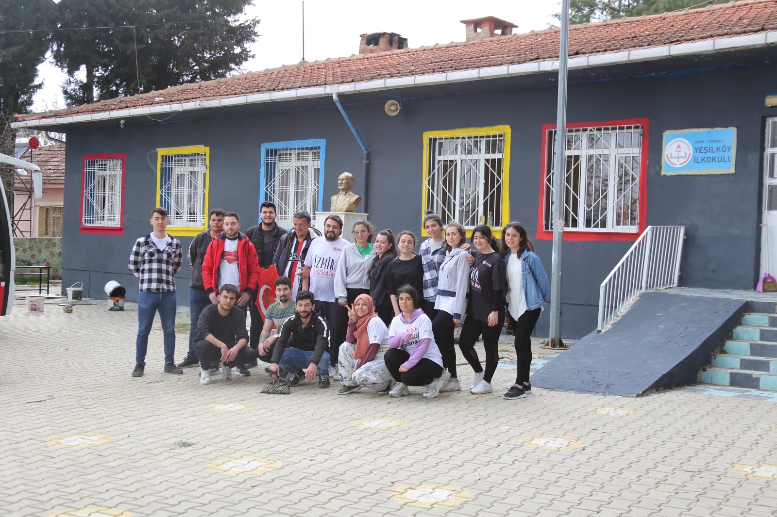 Okulun eksiklerini ve ihtiyaç listesini çıkaran öğrenciler, kentteki esnafı, yerel yönetimleri ve kurumsal şirketleri ziyaret edip eksikleri temin etti. Öncelikle Şubat ayında 27 öğrencinin mont ve bot ihtiyacını temin eden öğrenciler, İzmir Torbalı Yeşilköy'de bulunan Yeşilköy İlkokulu'nun onarım ve boyama çalışmaları için kolları sıvadı. Hem eğlenen hem de yoğun bir emek harcayan ekip, 2 günün sonunda çocuklar için yepyeni bir okul hazırladı.
