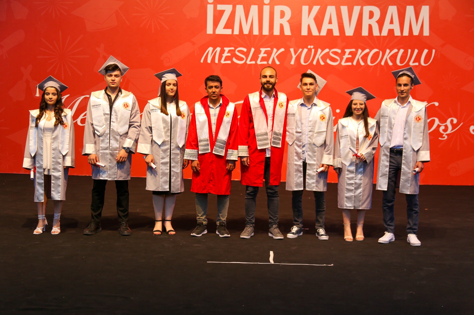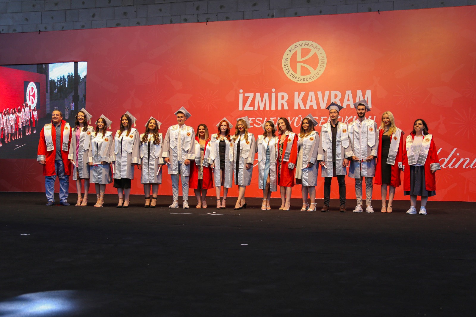 İzmir Kavram Meslek Yüksekokulu mezuniyet töreni Aşık Veysel Amfi Tiyatro'da kutlandı. Programlar halinde sahneye çıkan gençler diplomalarını aldı. Mezuniyet programı, mezun öğrencilerin sahneye çıkması ve kep fırlatması ile sona erdi. Törene, İKMYO Mütevelli Heyeti Başkanı Dr. Erkan Çelik, İKMYO Müdürü Prof. Derman Küçükaltan, İzmir Vali Yardımcısı Fatih Kızıltoprak, Kaymakamı Gökhan Görgülüarslan,akademisyenler ve veliler katıldı. Törende konuşan Dr. Erkan Çelik, bir yılda 30'a yakın mesleki iş birliğine imza attıklarını hatırlatarak, meslek yüksekokulları için iş birliklerinin önemine vurgu yaptı.